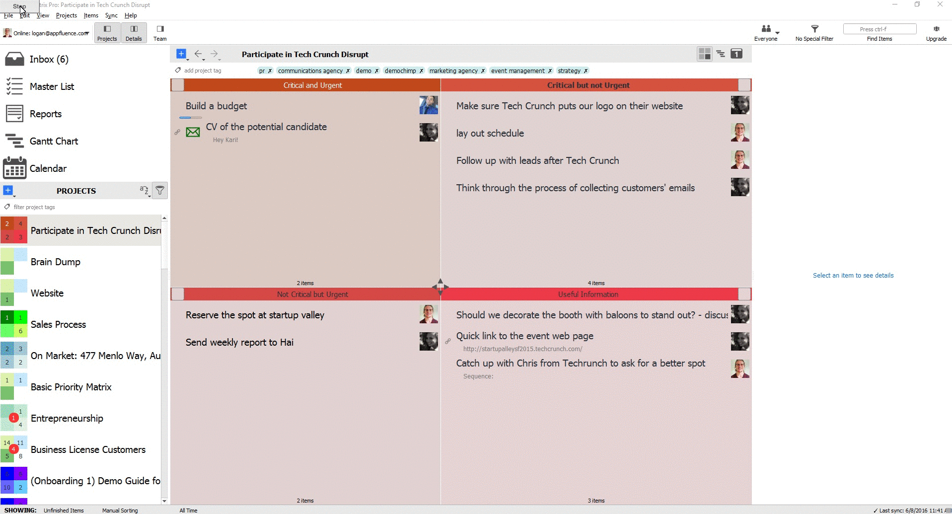 - Duplicate Project without Items: This option will duplicate the project name, project tags, quadrant names, and color schemes, but otherwise leave the project blank. This is a good option for recreating a project with a template that you like while also keeping the tags. If you wish to save a project as a template, you can do that, as well.