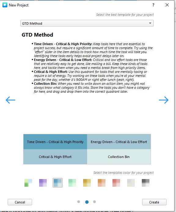We've created a ready template that you can use to follow GTD methodology. To access it just click on the "+" icon and select "GTD Method" GTD method Priority Matrix This is how the matrix will look like - GTD methodology template Priority Matrix