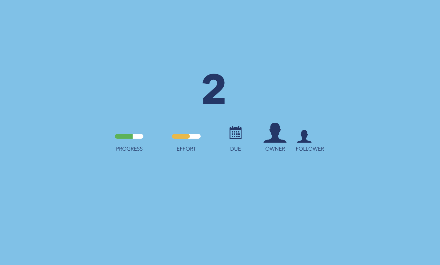 A level two item has more details like, progress, effort, due date and ownership/follower information. In addition to the Level one questions, a level two Priority Matrix items answers these questions: