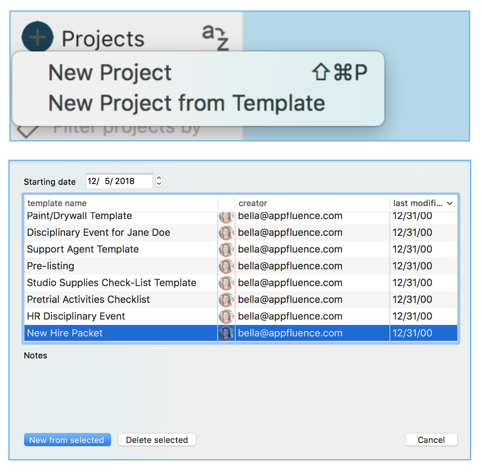 1. Create a new project from your new hire template.
